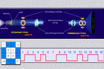 Принцип последовательной передачи изображения реализован в двух приборах - передающей и принимающей телевизионных "трубках". Электронный луч в передающей трубке отклоняется магнитным или электрическим полем и скользит по поверхности светочувствительной пластины, на которую объектив проецирует снимаемый объект. В зависимости от освещенности каждой точки пластины меняется сила тока в цепи.