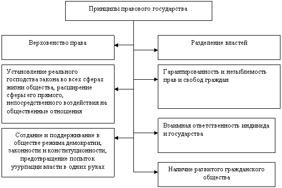 Принцип верховенства права собирательно символизирует наиболее важные аспекты правовой государственности. С точки зрения соотношения личности, общества и государства принцип верховенства права устанавливает приоритет правовых норм по отношению ко всем социальным регуляторам и закрепляет «юридическое» равенство субъектов, предполагающее безусловное подчинение (всех субъектов и в первую очередь самого государства) требованиям правовых норм. Право при таком подходе рассматривается как одинаковая, равная мера свободы для правящих и подвластных. Однако если для гражданина его верховенство определяется формулой «разрешено все, что не запрещено законом», то в отношении государственной власти (подчиняющейся этому же закону) действует другое правило «разрешено только то, что разрешено законом». Принцип верховенства права означает, что при возникновении коллизии, вызванной несовпадением содержащегося в нормативно-правовом акте предписания и государственной целесообразности, государство должно подчиняться требованиям, закрепленным в нормативных актах. Естественно, что существует порядок внесения поправок и изменений в действующее законодательство (отмены старых и принятия новых нормативно-правовых актов) с учетом требований государственной целесообразности, однако этот порядок предполагает конкретную процедуру законотворчества, несоблюдение которой рассматривается как противоправное поведение.