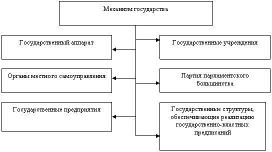 Рассматривая государство как специфическую социально-политическую организацию, возникающую на определенном этапе общественного развития в целях защиты членов сообщества, обеспечения условий, способствующих стабильному, поступательному развитию человеческой цивилизации, необходимо обратить внимание на то, что государственная деятельность носит не стихийный, а целенаправленный характер. При этом различные направления государственной деятельности (функции государства) реализуются многочисленными государственными и негосударственными органами, в совокупности образующими государственный механизм. Механизм государства олицетворяет государство в целом, представляет собой его реальное материализованное воплощение, его «плоть и кровь». Вне и без государственного механизма нет и не может быть государства. Понятие «государственный механизм» тесно связано с категорией «аппарат государства». В отечественной юридической науке эти понятия как правило отождествляются (, ). Вместе с тем эту точку зрения вряд ли можно признать оправданной. В процессе реализации функций государства принимают участие различные организации (в том числе и негосударственного характера), к которым с полным основанием можно отнести органы местного самоуправления, политические партии, негосударственные органы правосудия и т. д.