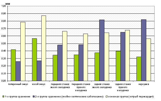 Однако, в зависимости от участка перикарда, выявленные достоверные изменения были разнонаправленными (диаграмма 6).