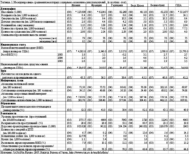 1. Япония в зеркале международных сравнений: высокий уровень экономического развития.