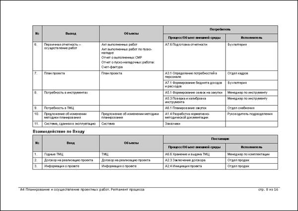 Выходы бизнес-процесса – объекты (материальные или информационные), являющиеся результатом выполнения бизнес-процесса, потребляемые другими бизнес-процессами или внешними по отношению к организации клиентами.