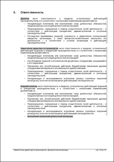 Ответственность должностного лица – дополнительная к той ответственности, которая указана в шаблоне регламента «Должностная инструкция». |