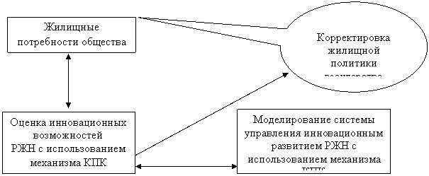 В наиболее концентрированном виде суть концепции управления инновационным развитием РЖН в современных условиях сводится к следующему: ускорение решения жилищной проблемы за счет использования механизма КПК, задействования сбережений граждан, а также имеющегося жилья, не отвечающего в настоящий момент требованиям потребителя. Следует подчеркнуть, что реализация инновационного потенциала РЖН может стать катализатором развития всей социально-экономической системы, поскольку РЖН, как локальная рыночная система, является составной частью общей системы национальной экономики России.