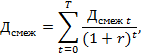 где r – норма дисконта; Пt – чистая прибыль организаций, осуществляющей строительство объектов доступной жилой недвижимости, стройиндустрии, смежных отраслей за период t=0 … Т; Аt – амортизационные отчисления; Kt – капитальные вложения в строительство объектов доступной жилой недвижимости, включая кредитные ресурсы |