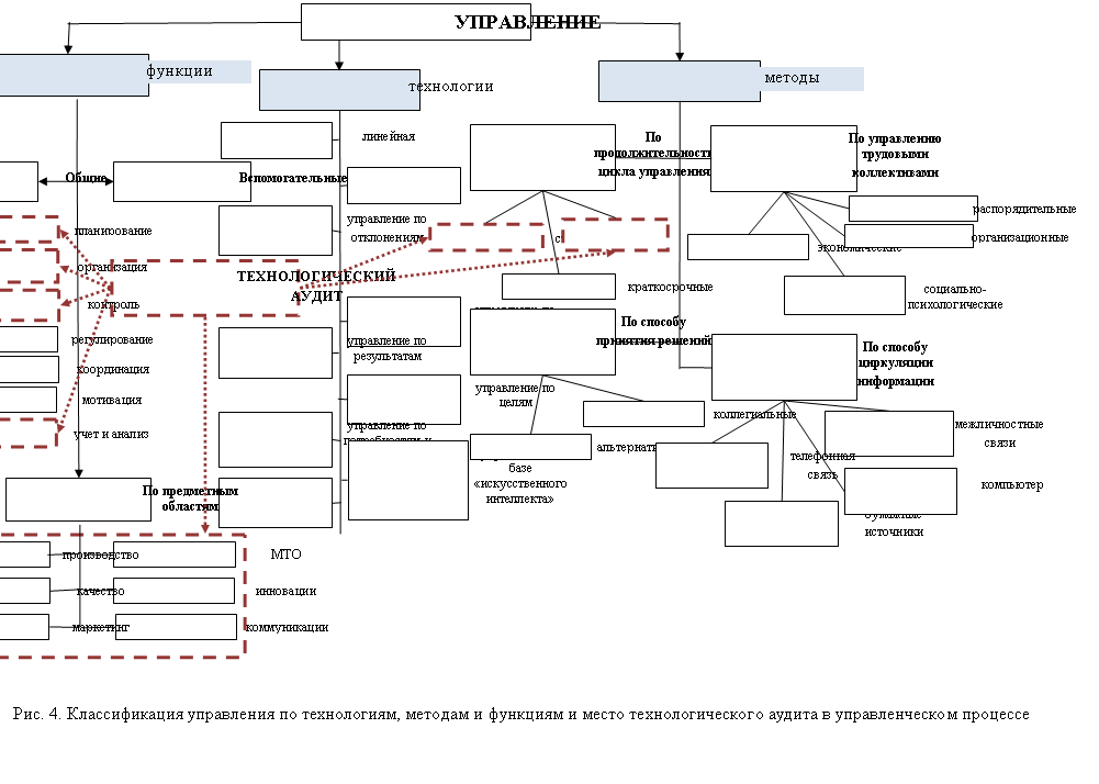 На рис. 4 представлена схема, описывающая технологии, методы и функции управления с учетом нахождения технологического аудита в управленческом процессе.