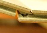 Как и при соединении передних сторон, элемент, который будет укладываться, надо легко загнуть под углом (на ширину пальца между элементом и полом) и вставить в шпонковую сторону элемента, уложенного ранее. Через легкий нажим в направлении стены и встряхивающие движения, соединение становится замкнутым. Продольная сторона является замкнутой, когда элемент лежит плоско на поверхности, а щель плотно закрыта.