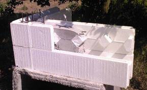 Поэтому пенопласт, легкий и теплый на ощупь материал, состоящий на 98% состоит из воздуха, подаренный нам полвека назад химиками и названный ими пенополистиролом, широко используют при строительстве разных технологических зданий, жилых домов, панельные стены которых похожи на пирог с химической начинкой или с надетыми на стену из монолитного железобетона с наружной и внутренней стороны термоблоками из вспененного полистирола. Такой дом гордо называют «ТЕРМОДОМ».