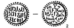 В случаях анонимности монет лицевой стороной считается та, которая несет религиозную легенду или имеет тамгу. (№ 2)