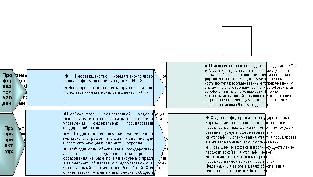 Рис. 8. Проблемы отрасли геодезии и картографии, их характеристика и основные цели решения проблем