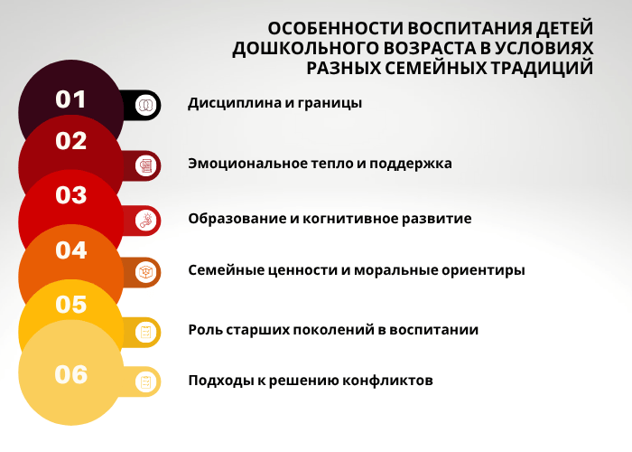 Освоение традиций детьми дошкольного возраста происходит через воссоздание характерного для русского народа уклада детской жизни, определяющего и содержание общения, и особенности организации деятельности детей на занятиях и в свободное время. Курс занятий с детьми предполагает использование в работе традиционных форм и методов семейного воспитания в условиях образовательного учреждения.