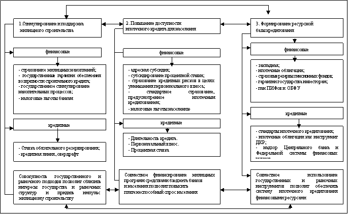 - определена зависимость функционирования ипотечного кредита от участия государства в формировании долгосрочных ресурсов, а также в повышении платежеспособного спроса отдельных категорий граждан путем предоставления бюджетных субсидий и стимулирования накопительных процессов;