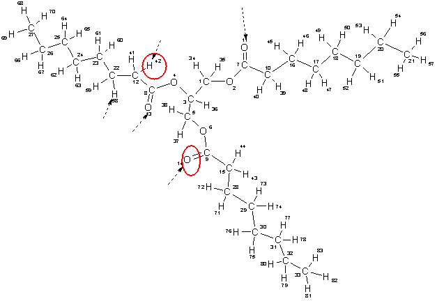Для молекулы триглицерида норма градиента составила 0,000578 кДж/моль/ангстрем. Значение полной энергии молекулы триглицерида составило – -17 кДж/моль.