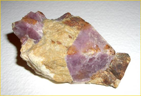 Шпинель, кристалл 3см.(по ребру октаэдра), в ортоклазе с альбитом и клиногумитом. М-ние Кухилал (Кугеляль), Сев-Вост. Памир