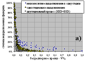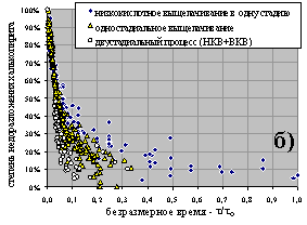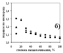 Увеличение расхода кислоты изменяет механизм разложения минералов – большая часть минерала окисляется на начальном, "активном" участке процесса (рис. 2). Переход к двустадиальному выщелачиванию еще более усиливает эту тенденцию за счет рациональной подачи кислоты, продлевающей "активную" высококислотную стадию (рис. 1б). Таким образом, расход и распределение серной кислоты являются факторами, принципиально меняющими характер АОВ концентрата: кинетическая функция НЕ является инвариантной по отношению к этим факторам.