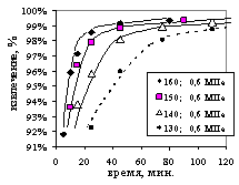 Из расчетов следует, что увеличение извлечения цинка с 99 до 99,5% при неизменных параметрах затребует увеличения времени ВКВ более чем в 2 раза. Такая информация необходима для проведения проектных и экономических расчетов.