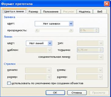 Поменять фон и цвет рамки для надписи на слайде можно выполнив команду меню: Формат ‑ Прототип. Откроется окно с несколькими вкладками (рисунок 5.5). На вкладке Цвета и линии можно изменить цвет заливки (фон) выделенной области, задать цвету прозрачность, создать рамку и т. д.