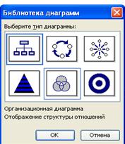2. В появившемся окне Библиотека диаграмм (рисунок 5.7) выбрать нужный тип диаграммы. Нажать на кнопку ОК.
