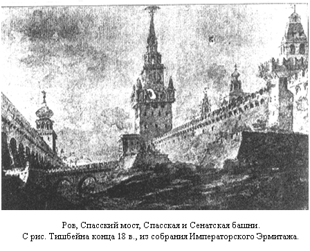 В 18 в. пространство от Беклемишевской (8) до Спасской (12) башни было самым сорным и нечистым местом вокруг Кремля, а может быть, и по всей Москве. Эта часть Красной площади ранее называлась Васильевской (53). Вторая ее часть называлась Великим торгом – здесь шла бойкая торговля.