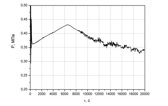 Рис. 13. Изменение избыточного давления на стенде ГЕ2М-ПГ в эксперименте