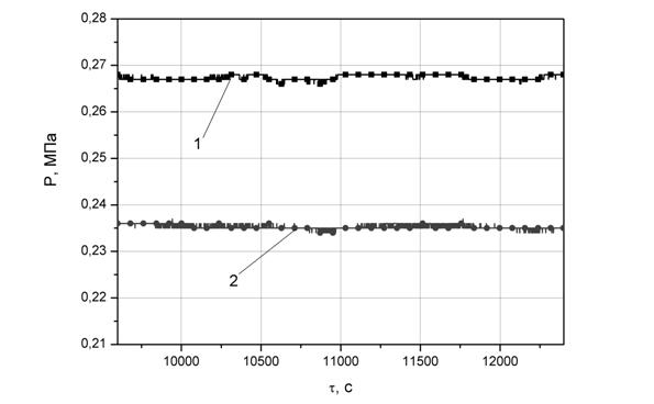 1 – давление в первом контуре, 2 – давление во втором контуре