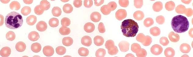 В окрашенных по Романовскому-Гимза мазках крови афалин, обыкновенных морских свиней и белух наиболее многочисленный тип лейкоцитов – нейтрофилы. Гранулоцитарный профиль лейкоцитарной формулы крови характерен и для тюленей. Однако в некоторые периоды раннего постэмбрионального развития у серых, гренландских и тюленей хохлачей, как и у ряда исследованных в данном отношении наземных животных, число лимфоцитов достигает уровня нейтрофилов либо превышает его. Цитоплазма нейтрофильных гранулоцитов тюленей, как правило, окрашивается менее интенсивно, чем у дельфинов. Гранулы слабо различимы. Такая же особенность окрашивания по Романовскому-Гимза свойственна нейтрофилам наземных хищных млекопитающих – собак и кошек (Риган и др., 2000). Большинство гранулоцитов тюленей имеют сегментированыые или палочковидные ядра. Однако у новорожденных и кормящихся молоком серых и гренландских тюленей в значительном числе встречаются юные, т. е., низкодифференцированные клетки гранулоцитарного ряда, метамиелоциты. Метамиелоциты присутствуют также у дельфинов афалин, как больных, так и здоровых.