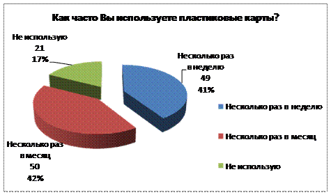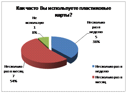Основная часть учителей пользуются пластиковыми картами достаточно часто, только один человек (8% опрошенных) ответил, что не пользуется ими.