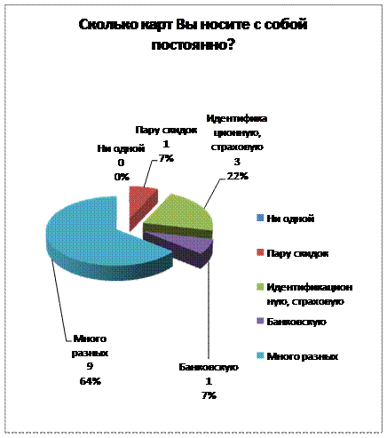 33% опрошенных ответили, что не носят с собой ни одной карты постоянно.
