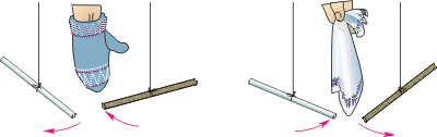 Наэлектризуем эбонитовую палочку шерстяной варежкой, а стеклянную палочку – шелковым платком. Подвесив палочки на нитях, увидим, что эбонит и шерсть, стекло и шелк притягивают друг друга, а стекло и шерсть, эбонит и шелк отталкиваются друг от друга: