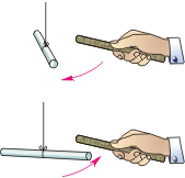 Как видите, Ш. Дюфэ обнаружил, что "стеклянным" электричеством можно наэлектризовать не только стекло, а любое тело (см. подчеркнутую фразу). Взгляните на рисунок справа. Верхней эбонитовой палочке мы передали некоторое количество "стеклянного" электричества, и она начала отталкивать стеклянную палочку. Нижняя же эбонитовая палочка наэлектризована как обычно: трением о шерсть или мех.
