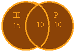 Способ 2. Представим множества учащихся, посещающих математический, физический и химический кружки, в виде кругов, вырезанных из плотной бумаги. Будем считать, что площадь каждого из этих кругов равна числу учащихся, посещающих соответствующий кружок. Наложим круги друг на друга так, чтобы было понятно, что есть учащиеся, посещающие один, два или три кружка. Вычислим площадь получившейся плоской фигуры: 14 + 18 ++ 5 += 22 — это и есть число учеников, посещающих кружки. Следовательно, кружки не посещают= 14 учеников.