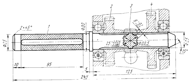 Диаметр замков нижнего 25 и верхнего 22 штоков — 7,5-0,013-0,028 мм, длина их соответственно 10,l-0,12 мм и 15,3-0,12 мм, а диаметр толказамков—4-0,01-0,002 мм, длина его—11,5-0,14 мм.