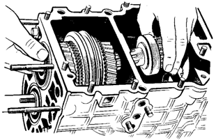 Разборка коробки передач и дифференциала. При разборке и последующей сборке необходимо иметь приспособление для крепления коробки передач, оправку для удержания шестерен, съемник подшипника дифференциала, торцовые ключи с набором головок 10, 12, 13 мм, динамометрический ключ с головкой 17 и 36 мм, комбинированные плоскогубцы, отвертку, выколотку, съемник
