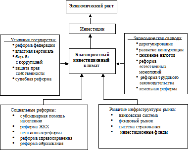 Намеченная ныне действующим Правительством РФ долгосрочная стратегия экономического развития исходит из того, что экономический рост может быть обеспечен при опоре на частные инвестиции, которые чрезвычайно чувствительны к условиям ведения бизнеса (рис. 7.2).
