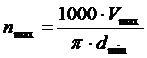 Соответственно максимальные и минимальные значения чисел оборотов шпинделя определяются как: