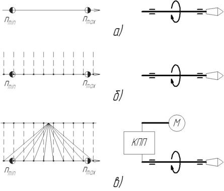 Следует иметь в виду, что при использовании различных типов устройств для управления двигателем могут быть получены приводы шпинделя станка, существенно отличающиеся по структуре механической части (имеющие разное количество групп передач и количество ступеней в каждой группе).