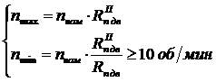 При выборе двигателя следует ориентироваться на такие паспортные данные как номинальная частота вращения (или максимальная частота вращения). Тогда другая граница диапазона регулирования частоты вращения определится по формулам: