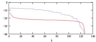 – отсчеты АКФ сигнала. Этот параметр позволяет оценить суммарный уровень дальних боковых лепестков, начиная с элемента k до конца АКФ.