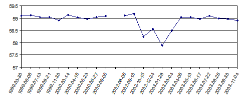 Ценной информацией о радиометрических свойствах калибровочных антенн полигона были данные об уровне ЭПР и стабильности отражения, полученные в результате более чем 40 экспериментов с помощью радара ERS-2 в годах (рис. 5). Видно, что стабильность уровня отражения антенны №1 очень высока. Если отбросить измерения зимы года, искаженные наличием корки льда на зеркале антенны, то средняя ЭПР составляет 59 дБм2. При этом среднеквадратичное отклонение ЭПР составило около 0.067 дБ, что сравнимо со стабильностью лучших образцов зарубежных активных калибраторов.