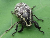 Надкрылья удлиненные, параллельные, с округленными боками, без ребер, в неясных точках и неправильных морщинках, покрыты многочисленными неправильными пятнами из желтовато-белых продолговато-овальных чешуек. В промежутках между пятнами лишь с редкими одиночными такими же чешуйками.