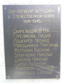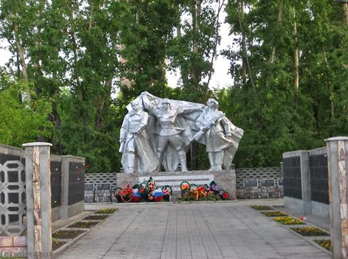 А сейчас мы отправляемся в сквер на привокзальной площади. Здесь видим памятник воинам, павшим на фронтах Великой Отечественной войны 1941-45гг, ушедших на войну из Черепановского района.