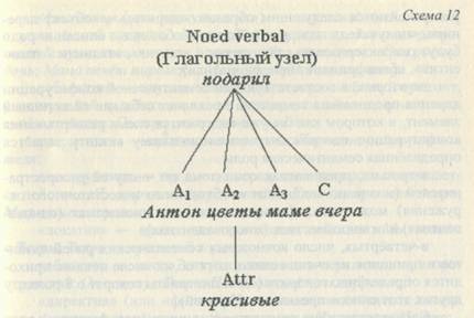 Следует иметь ввиду, что Теньер рассматривает порождение предложения как способность перевести структурный порядок слов в линейный, а понимание – способность перевести линейный порядок слов в структурный.
