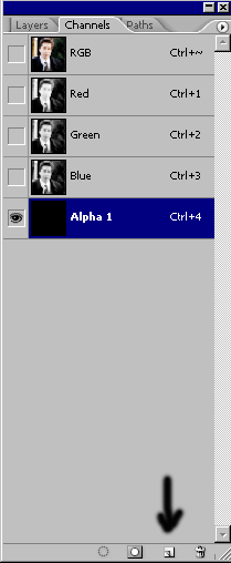 Переходим в палитру Каналы (Channels) и создаём новый канал, нажав на указанный значок.