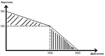 6.8. На машиностроительном предприятии в одном из цехов можно произвести 1000 двигателей или 500 агрегатов, а в другом альтернативная стоимость производства 2 агрегатов равна 8 двигателям при максимально возможном производстве двигателей равном 1600 единицам. Постройте общую кривую производственных возможностей машиностроительного предприятия и заштрихуйте плоскость каждого цеха.