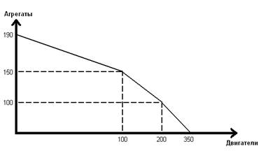 г) используя графическое изображение КПВ предприятия, вычислите максимально возможное производство агрегатов, если двигателей будет произведено 130 единиц.