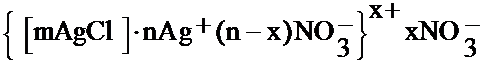 Рассмотрим строение коллоидной мицеллы на примере золя хлорида серебра AgCl, полученного в результате химической реакции: