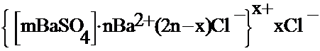 Для нерастворимого в воде сульфата бария (полученного в избытке BaCl2) строение колллоидной частицы можно изобразить формулой:
