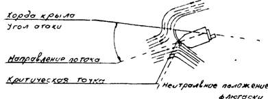 По мере увеличения угла атаки крыла критическая точка, передвигаясь, совмещается с местом установки флюгарки.