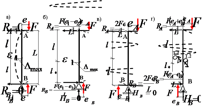 Далее в главе 6 приведено описание лабораторных исследований устойчивости внецентренно–сжатого стержня с эксцентриситетами в условиях упругого деформирования и анализ результатов испытаний объектов. Исследовалось влияние жесткости опорных закреплений на величину максимального изгибающего момента при продольном изгибе.