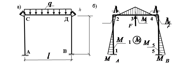 Рис. 9. Расчетная схема рамы. Виды возможных механизмов «разрушения» рамы